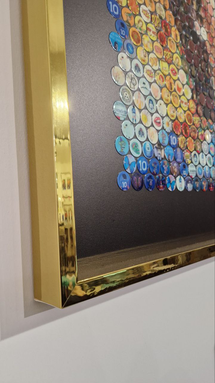 Possedere quest'opera significa accogliere in casa un pezzo di storia contemporanea, racchiuso in una preziosa cornice dorata che ne esalta la sacralità e l'impatto visivo.