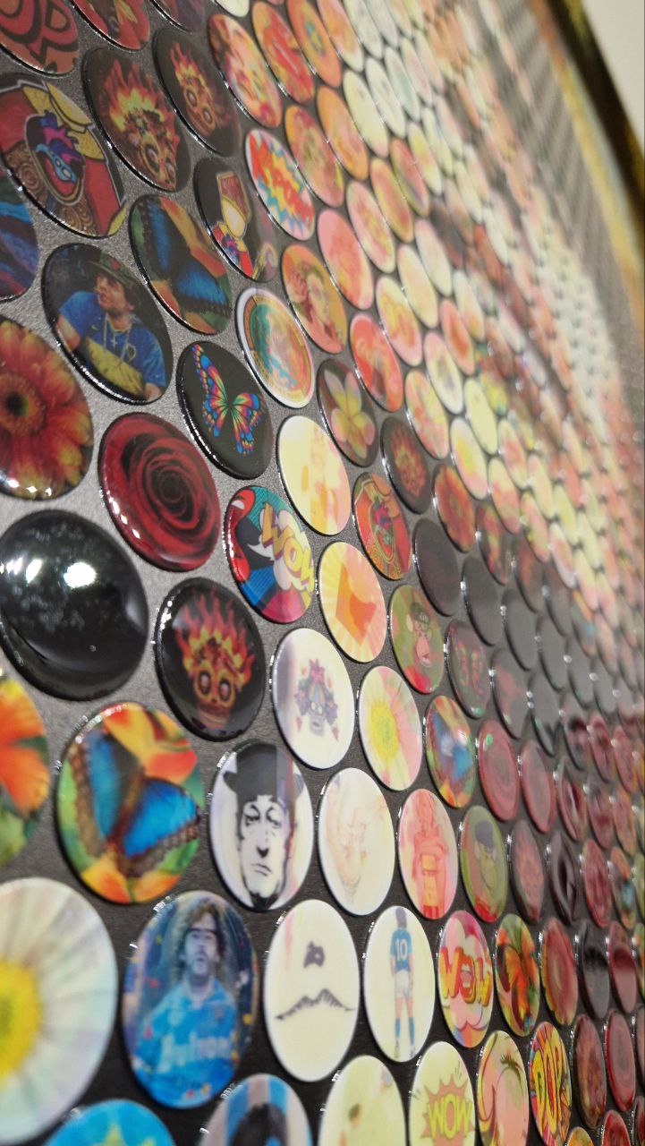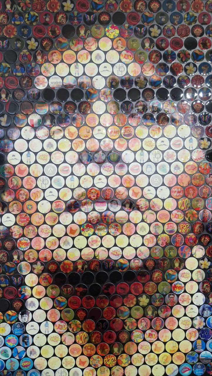 L'artista monzese, profondamente influenzato dal fermento culturale napoletano, ha dato vita a un'opera monumentale composta da un'infinità di piccole sfere di cristallo. Ogni sfera racchiude un frammento di immagine, un atomo di colore che, fuso su una tavola mediante un sofisticato processo ceramico, concorre a formare un mosaico magnetico.