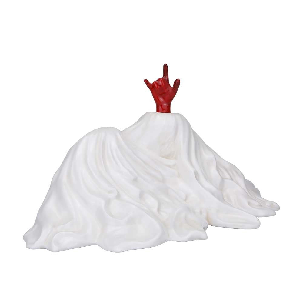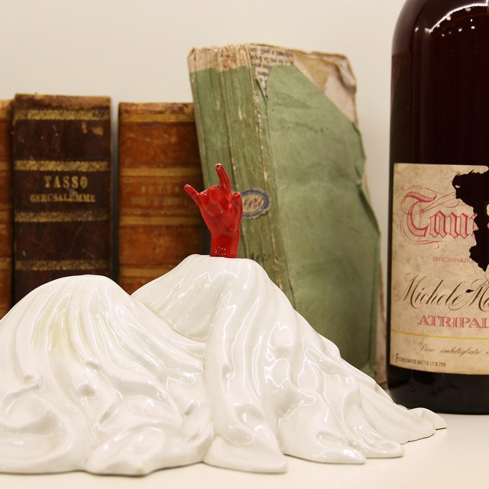 La scultura “La Napoli Misteriosa” di Macrì rappresenta un candido Vesuvio avvolto in un velo, con in cima un paio di corna ben in vista. Un oggetto d’arredo che richiama subito Napoli, la sua ironia e la sua capacità di mescolare sacro, profano e scaramanzia in un solo simbolo.